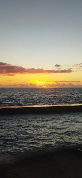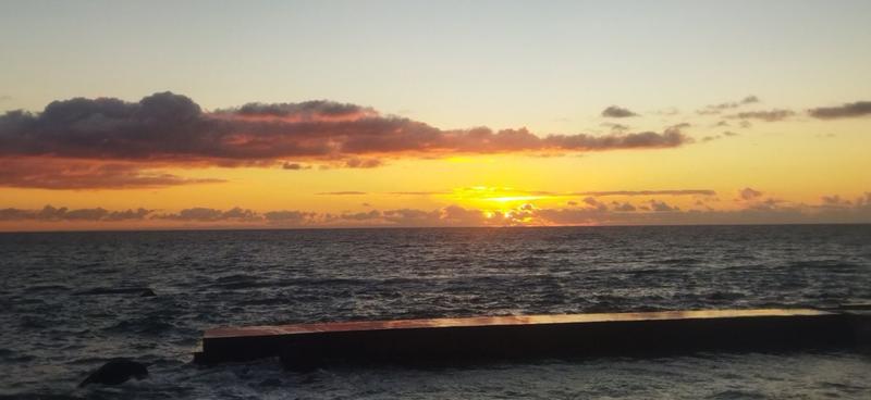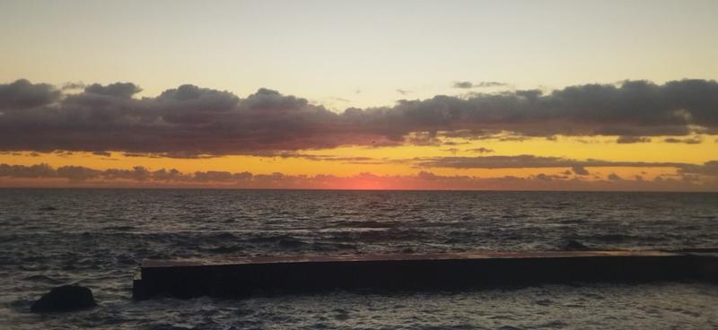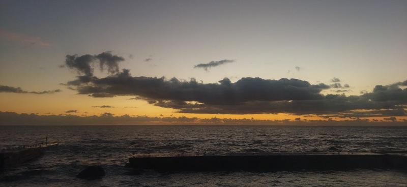 Сегодня погода полная противоположность вчерашней. Ветра нет, но и солнца тоже не видно. Влажность 90+%, туман, всё мокрое. Волнение подстихло, но никто не купается.