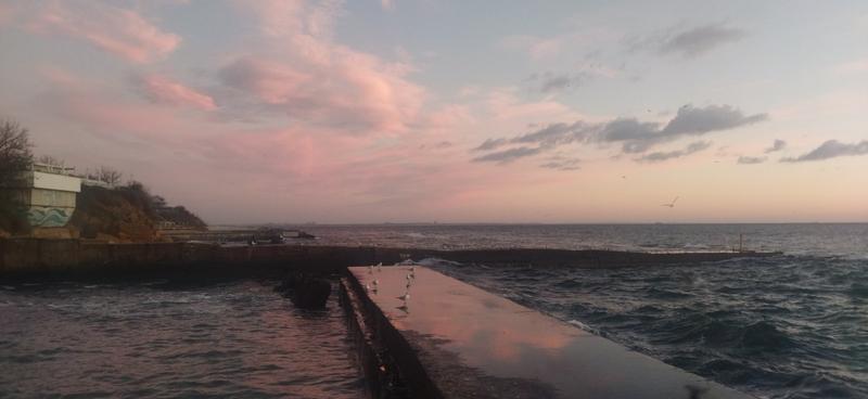 Фонтанка. У моря просто супер! +17°С, солнце припекает, легкий южный ветерок, совсем не холодный, море волнуется 4+ балла.
