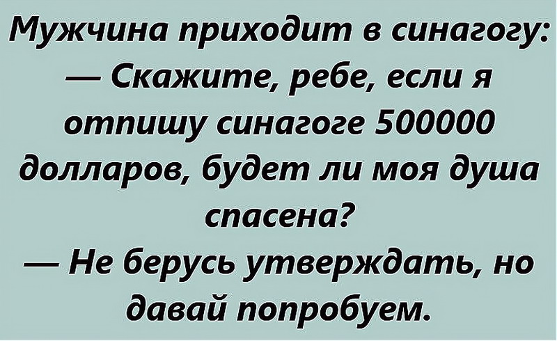 Еврейское кладбище. В самом центре за очень красивой оградой стоят три красивых памятника. На одном написано: «Здесь покоится самый известный наперсточник Се*мен Либерзон». На другом — «Или здесь», на третьем — «А может и здесь».