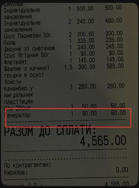 Хотя сумма за генератор 90 грн при счете 4565 грн вызывает улыбку.