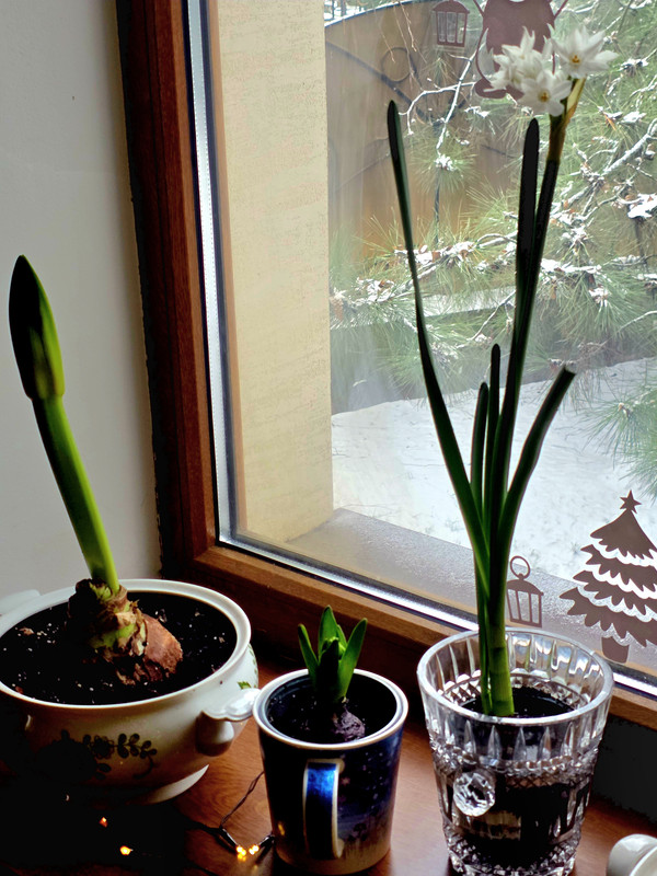Я зимой всегда проращиваю луковицы разных цветов на подоконнике. Это такое волшебство, - посадить среди зимы луковицу, и ждать пока из нее распустился душистый цветок!)