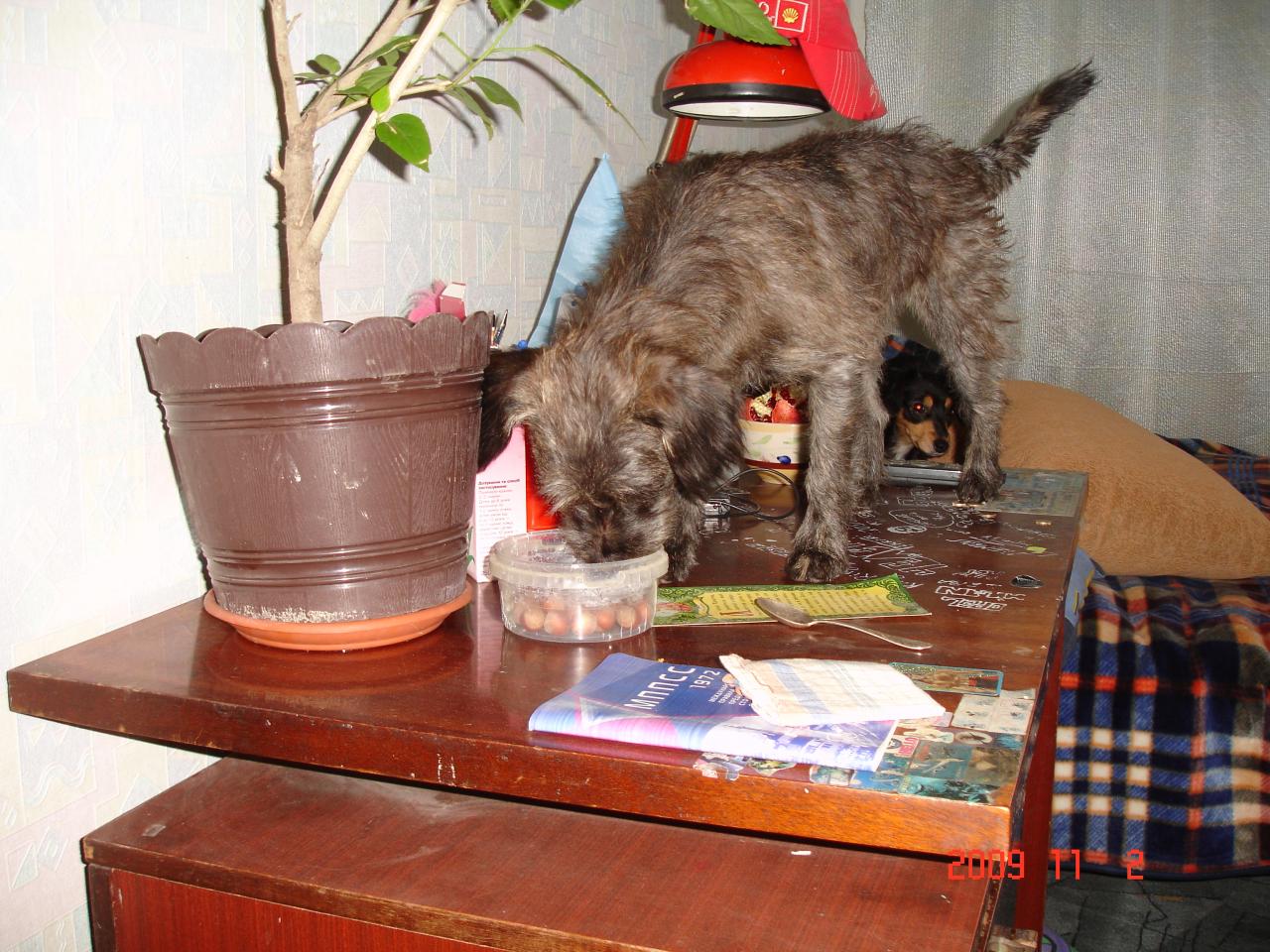 У меня такса 5 мес. такая хулиганка!! Папа поехал на рыбалку,был там 2 дня (старался),привёз домой 20 раков!! мы вечером сварили и поставили в гостиной на стол. она проснулась, залезла на стол и съела все раки !!я утром встаю, и вижу такую картину( ЛЕЖИТ ОНА НА СТОЛЕ ,СПИТ,МОРДАЧКА В МИСКЕ А ВОКРУГ ОСТАТКИ РАКОВ)А ЕЙ ТО НЕЛЬЗЯ!!!