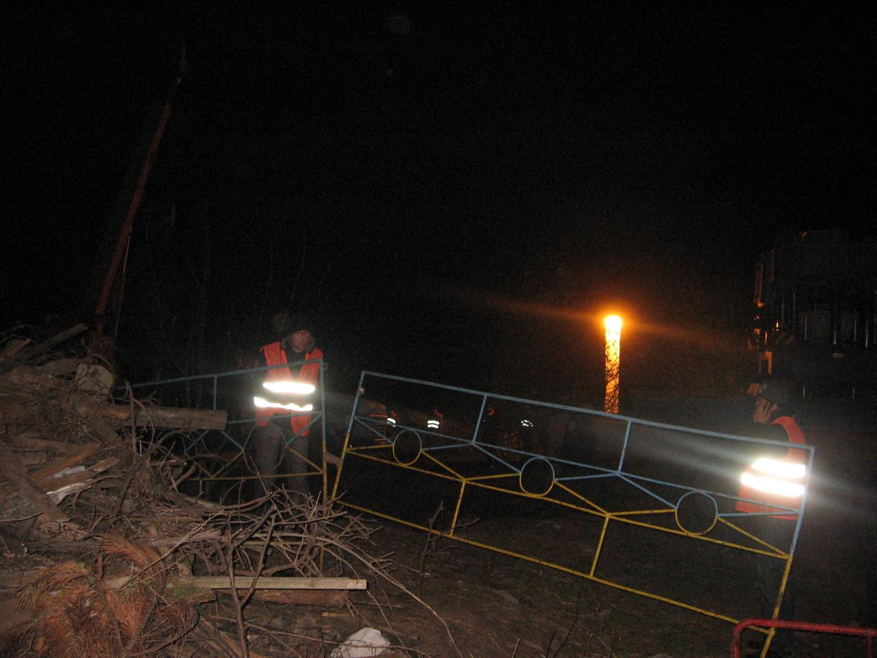 Вдоль забора стоят одетые в рабочие жилеты люды - это менты-срочники с Промышленной. Все молоденькие ребята, которым дали приказ.