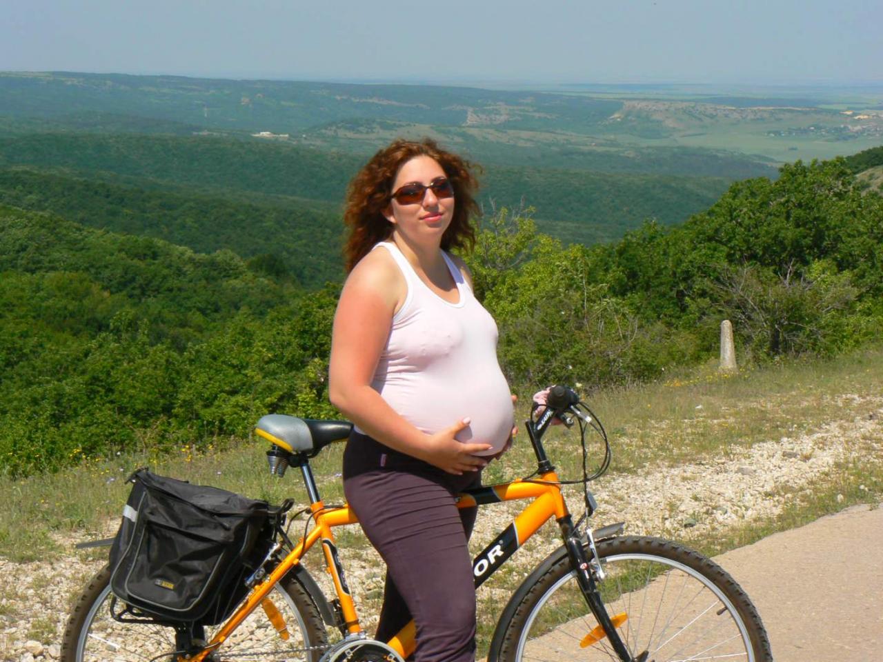 Итак, воспоминания о лете...Крым, плато Караби, 1200м над уровнем того самого моря, 6-ой месяц беременности, покатушки где-то на 20км. Кто помнит-мы так на ТЗ летом катались-Юлька на велике, я на роликах (подталкивал на подъемах).