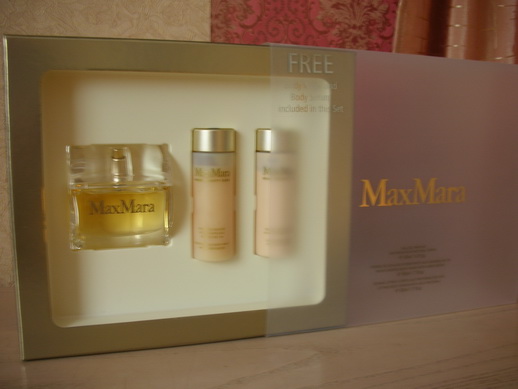 еще есть такой вот наборчик Макс Мара. edp 40ml, 50мл "body wash" (наверно гель для душа) и 50мл цитирую "lifting body serum". брала на подарок, не пригодился. хочу 250грн