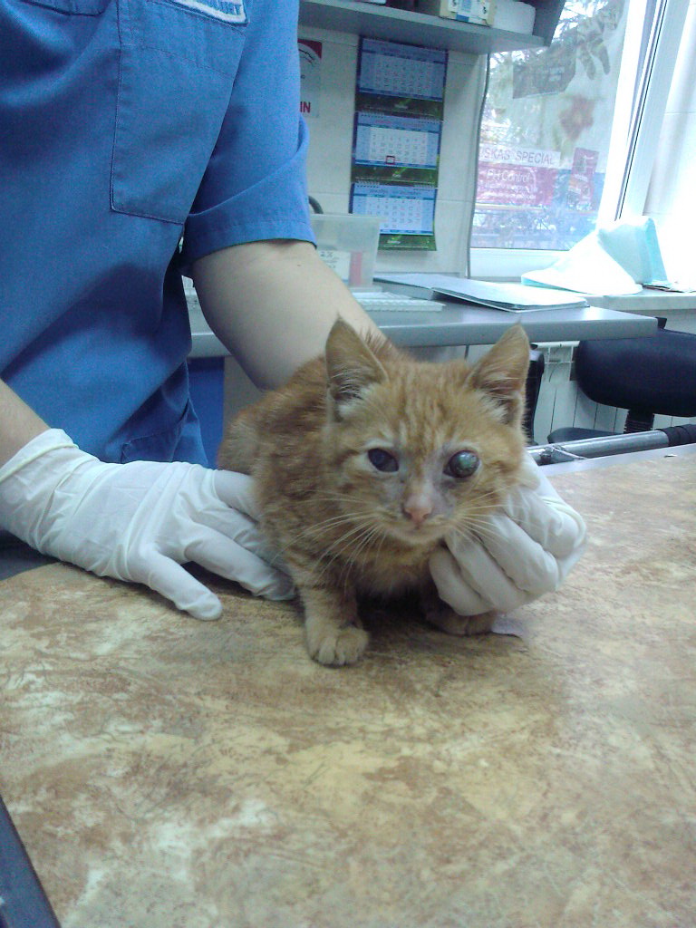 Я подобрала в подвале котенка, лечу в Айболите. У нее серьезные проблемы с глазами. Один глаз, кот. она обварила паром в подвале, придется удалять. Второй видит плохо от рождения. Она почти слепая, различает только силуэты. Кому не предлагаю, все боятся брать, мол, проблем с такой будет куча....А я забрать не могу ее. Иначе б не писала здесь. Помогите найти ей хозяев, пожалуйста....!!!![]()