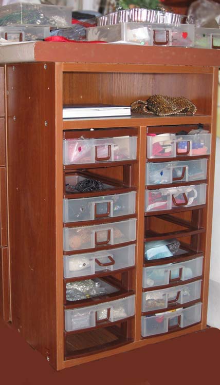 ...постоянно сижу у компьютера,поэтому рядом примостила (между столом и комодом) пакет и складываю там нитки...и за год пакет уже вровень со столом
