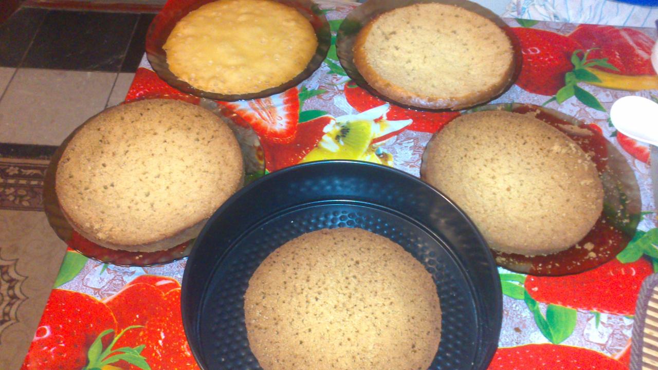 странно почему медовик у вас не получился... пекла 45 минут при температуре 150 градусов. на 5 коржей разрезала... но я как-то легко на этот эксперимент согласилась)) и понравилось!