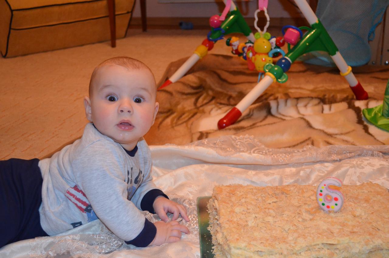 Тимофея с полугодием,пусть растет здоровенький!!!))Такой серьезный и глазки такие взрослые,туфу на вас))Тортики сама пекла?)
