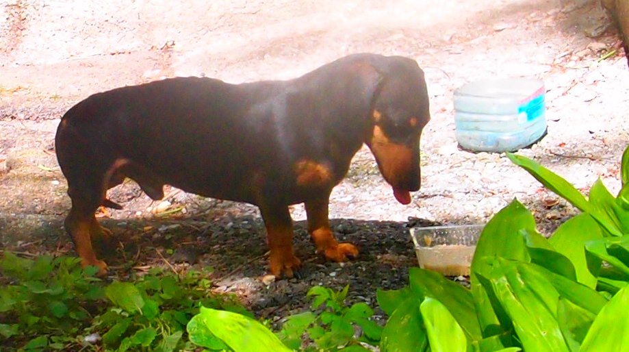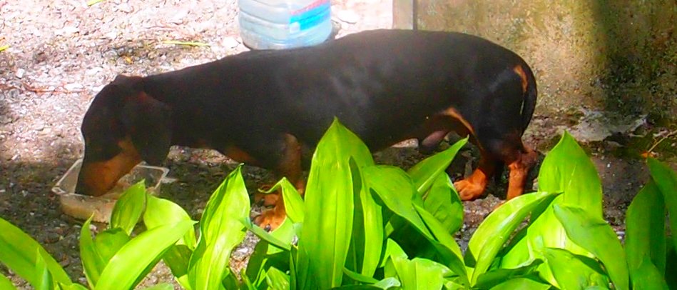 Ева до течки и ложки была очень скромной в еде, в парке хозяева стандартных такс смотрели на нас с жалостью))), а сейчас это просто домашний пылесос...