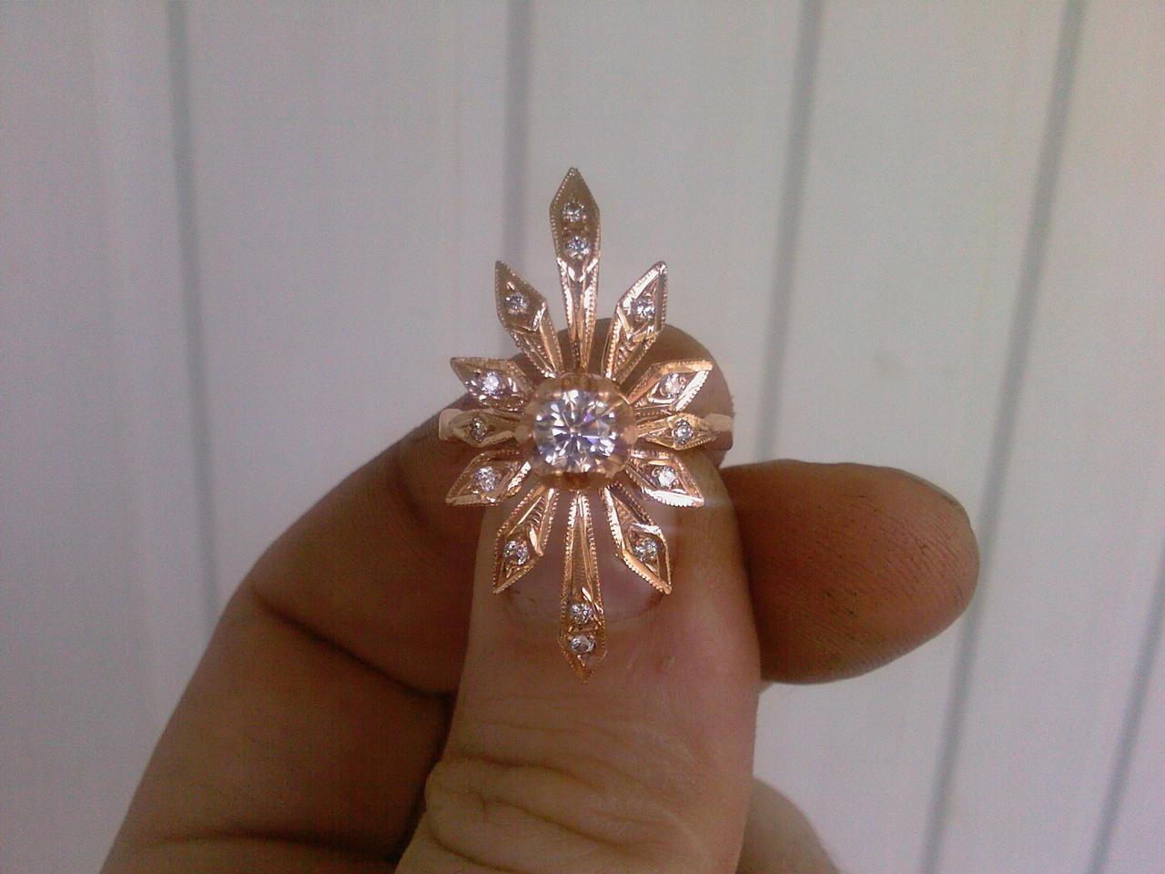 Мне это кольцо кажется немного агрессивным, острые края... Вот если бы бриллиант окружить мягкими лепестками в виде цветка!