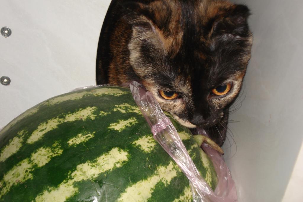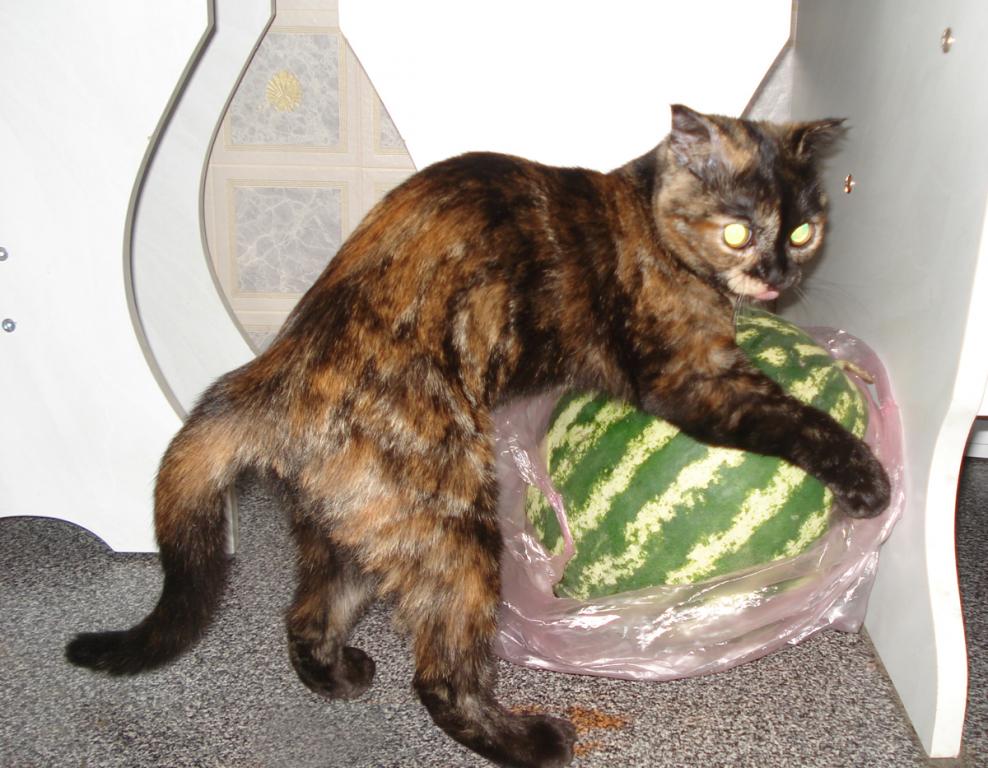Я ща лапы помою и сама его съем! А хозяйке только хвостик от арбуза оставлю!![]()
