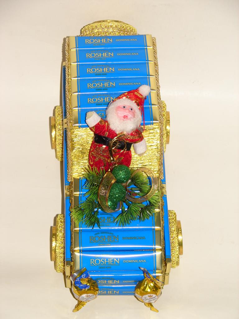 Новогодние подарки из конфет и шампанского,новогоднее оформление любой бутылки спирного