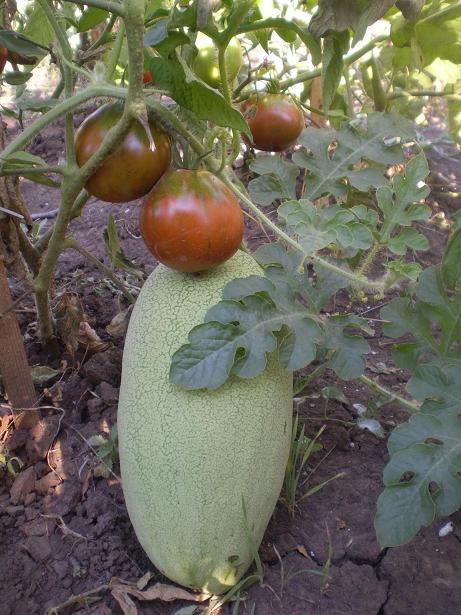 А на мои грядки с помидорками прокрался диверсант Арбузик решил, что он Синьер-Помидор А помидорки вроде и не против такому соседству Вообщем красота, хоть натюрморт пиши