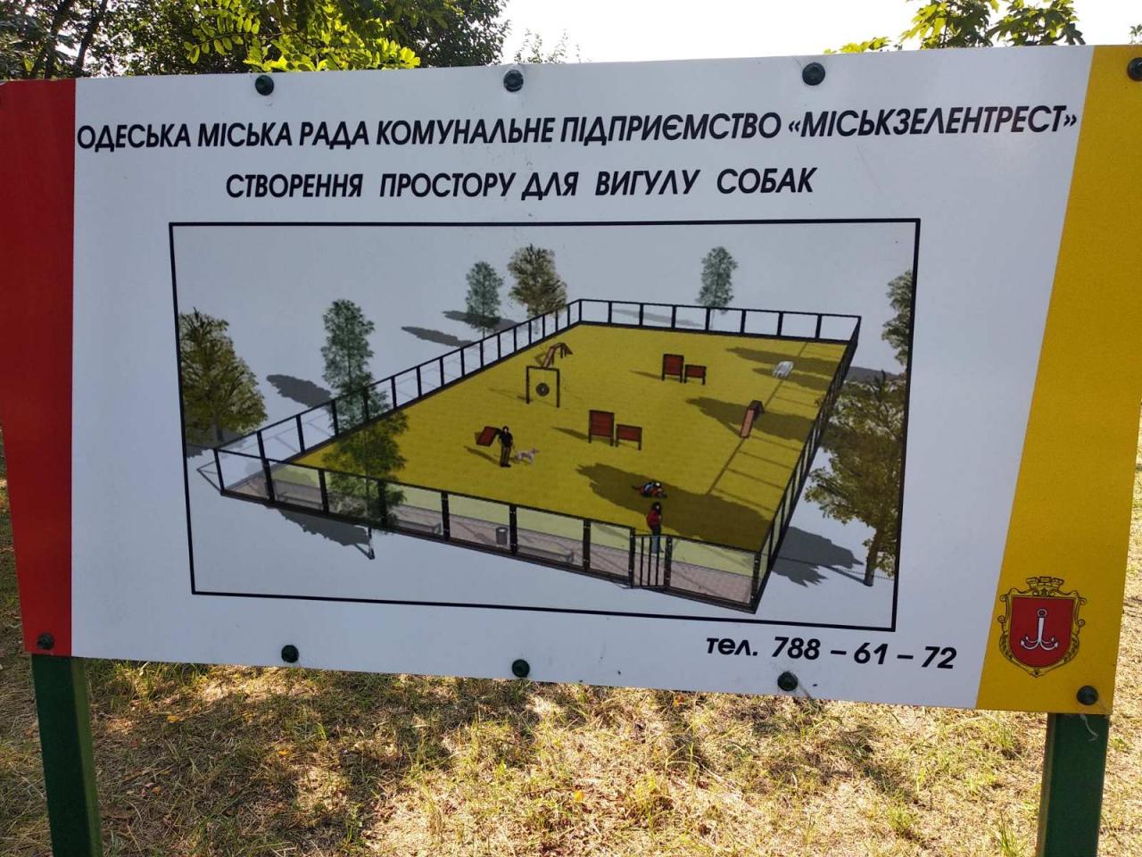 А что тут такого? Во Львове только в таких местах собак и выгуливают, и ничего, чем Одесса хуже? На входе упаковка пакетиков для какашек, вода для питомцев на территории + разные снаряды для занятий с собаками. Нормально, никто не орет "Уберите вашу собаку от детей!", да и какашки по парку не валяются