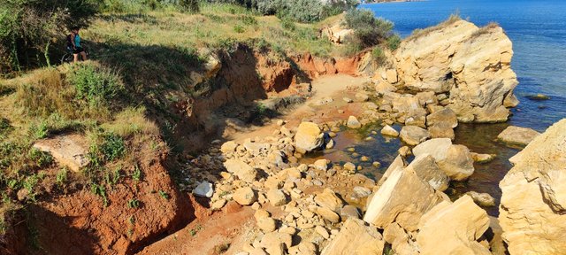 И про море. В Коблево, быть может, с морем более строго -- ближе к фронту, в начале войны были здесь две пытки высадки десанта (отдать должное нашим воинам: оба десанта были наголову разгромлены, оркам было без вариантов -- или смерть, или плен). В отличии от Коблево, на Бугазе при официальном закрытом статусе моря (также сохраняющаяся десантная опасность), физической охраны и препятствий доступа к морю нет (хотя было на начальном этапе). Море свободно для посещения, хотя и не приветствуется властями.