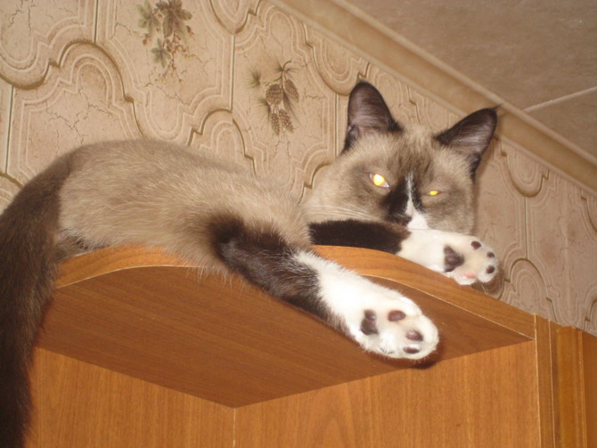 Мой знакомый кот Ясон. Любит отдыхать под потолком.