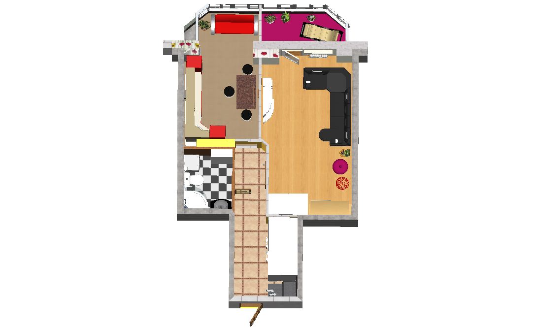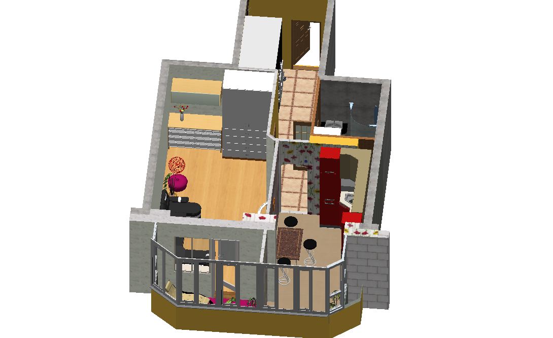 есть планировка,варианты перепланировки в 3D - 45,95кв.м. Кому-то нужно?
