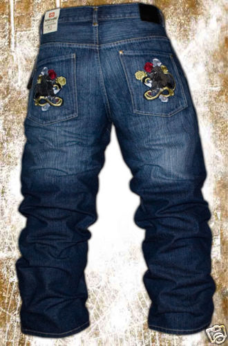 зато они сидят хорошо, у них в baggy style широкие прямые штаны и узкая относительно них талия и длина 32У меня такие голубые и серые, я очень их люблю. А вообще вышивка там разная бывает, иногда даже очень интересная.