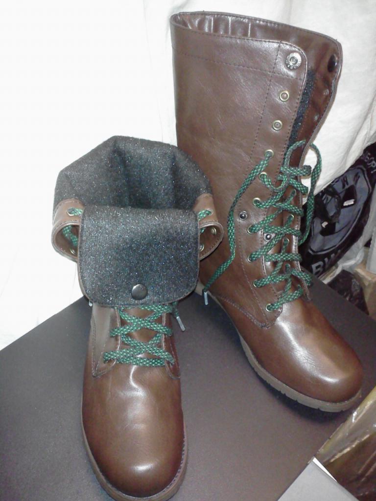 Сапоги новые из мягкой кожи на шнуровке. Голенище высокое с тремя застежками для фиксации в отогнутом положении, соответствующем ботам. Размер ориентировочно 40. В использовании (носке) не были. Находятся на 5 ст. Большого Фонтана. Цена 500 грн.