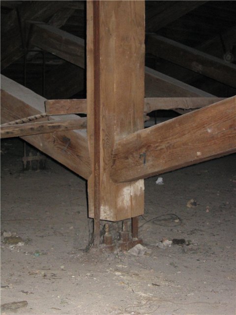 А это чердак над Андреевски залом. Еще одна весьма интересная штука. Стропила чердака не опираются на стены здания, а висят в воздухе! На момент постройки зданий, где была использована такая технология, насчитывалось единицы.