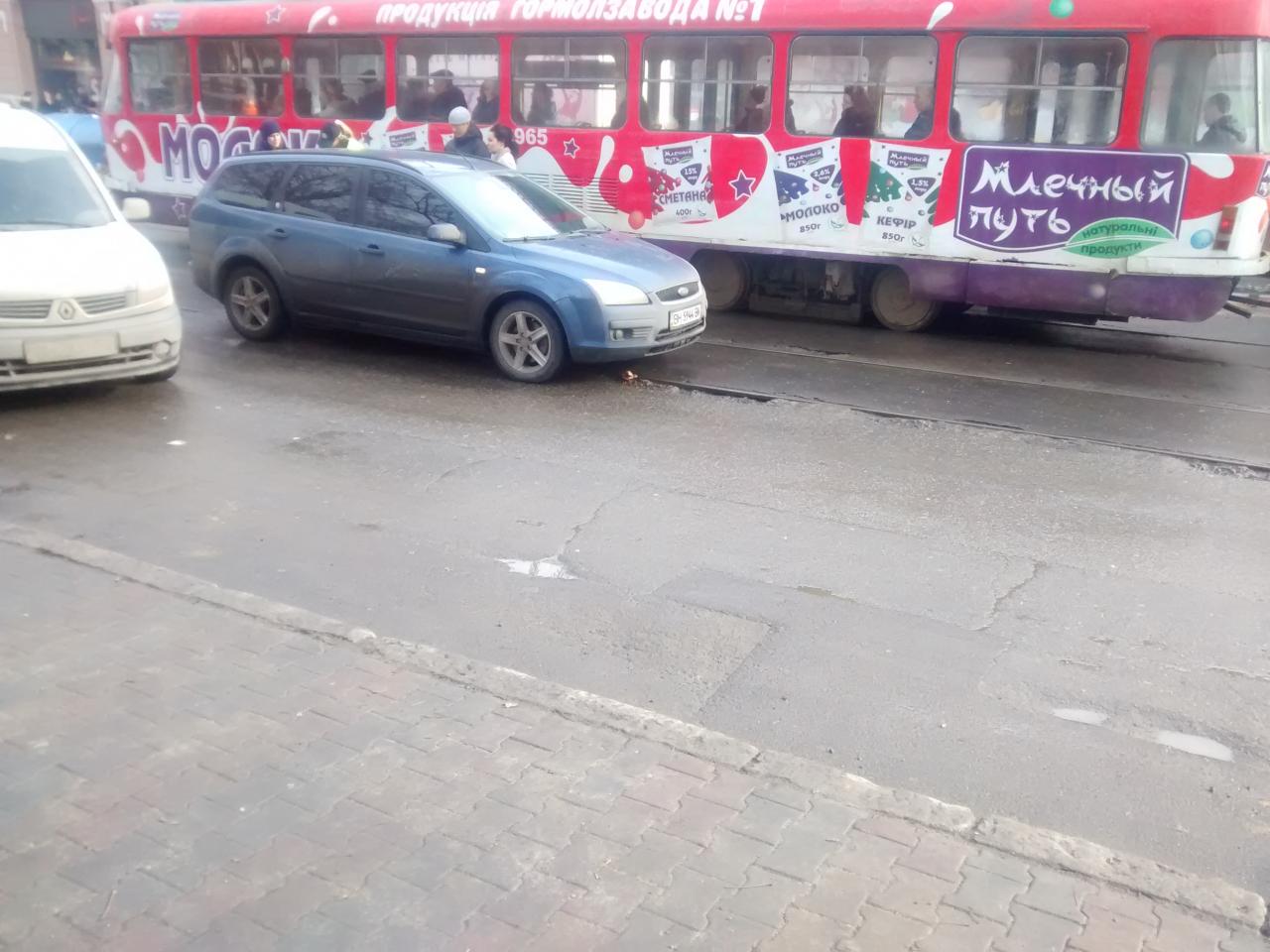 Причина остановки движения на Преображенской. Все трамваи стояли.У форда немного поломался бампер. Второго участника не заметил, полиция оформляла. Сейчас движение восстановленно!