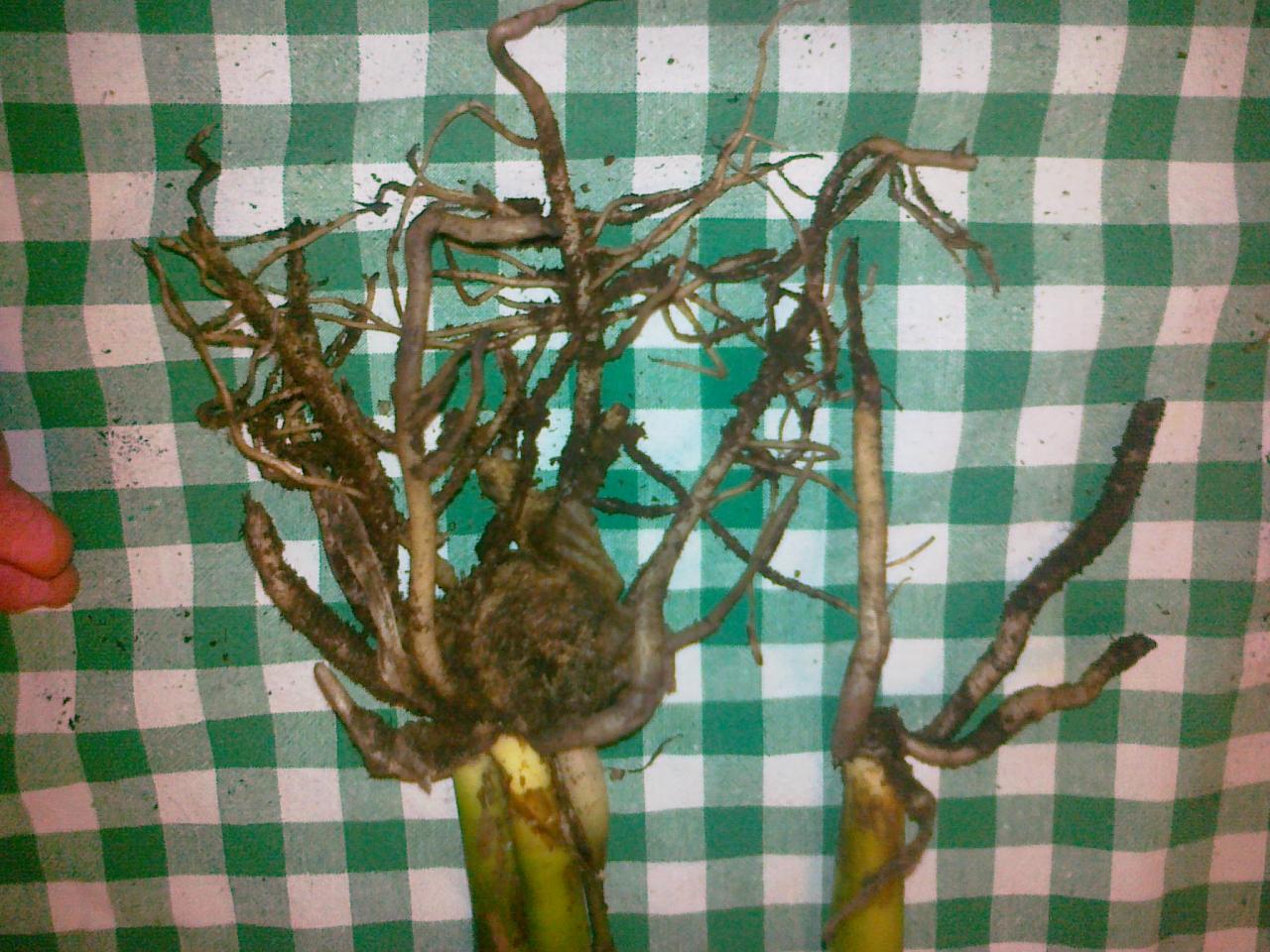 в горшке так он выглядел до того, как я раскопала. самая большая "луковичка", которая уже без стебелька, действительно гниет. а что с этими веточками, которые уже без луковички? что с ними делать?