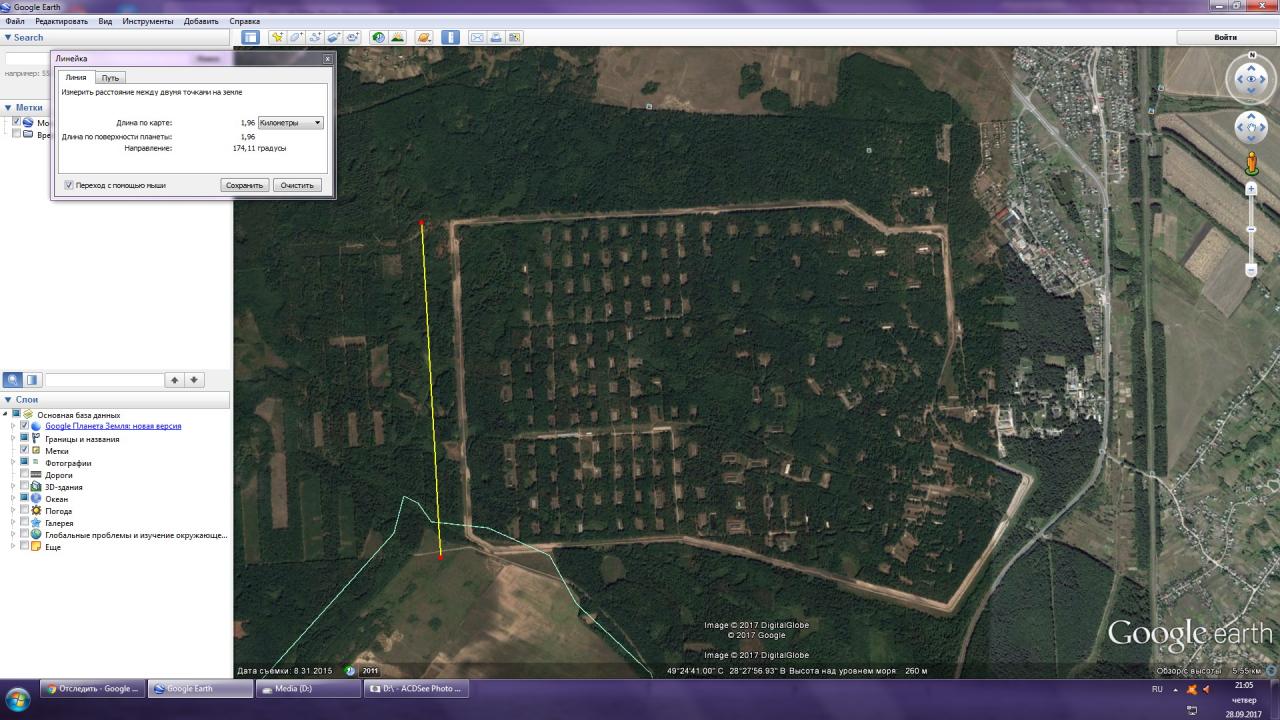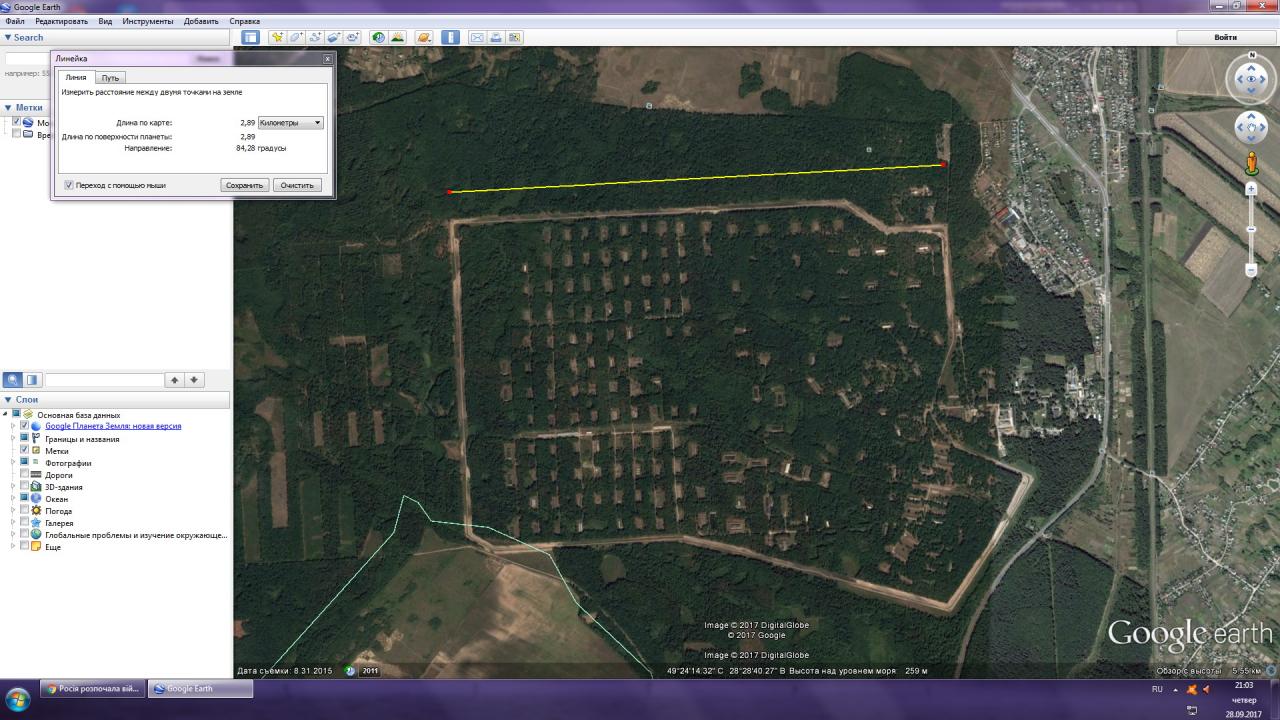 Замерил по гугль-земле - основной массив примерно 2,9 на 2 км, что дает те же 600 га...