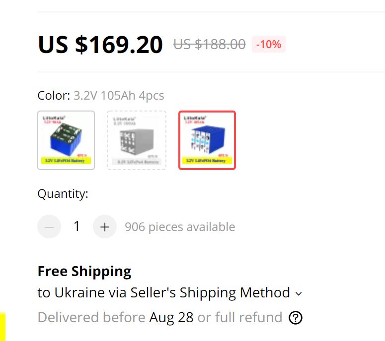 Про акумулятори - брати 4 комплекта по 4 шт гарна ідея для зменшення митних платежів, але спочатку треба обрати інвертор. Мені один сподобався, але він вимагає батареї у 200 В, змінюємо елементи з 16х3.2х100 на 64х3.2х30 та отримуємо суму у $1200 замість $700. Ємність така сама, ціна у 2 рази вище.