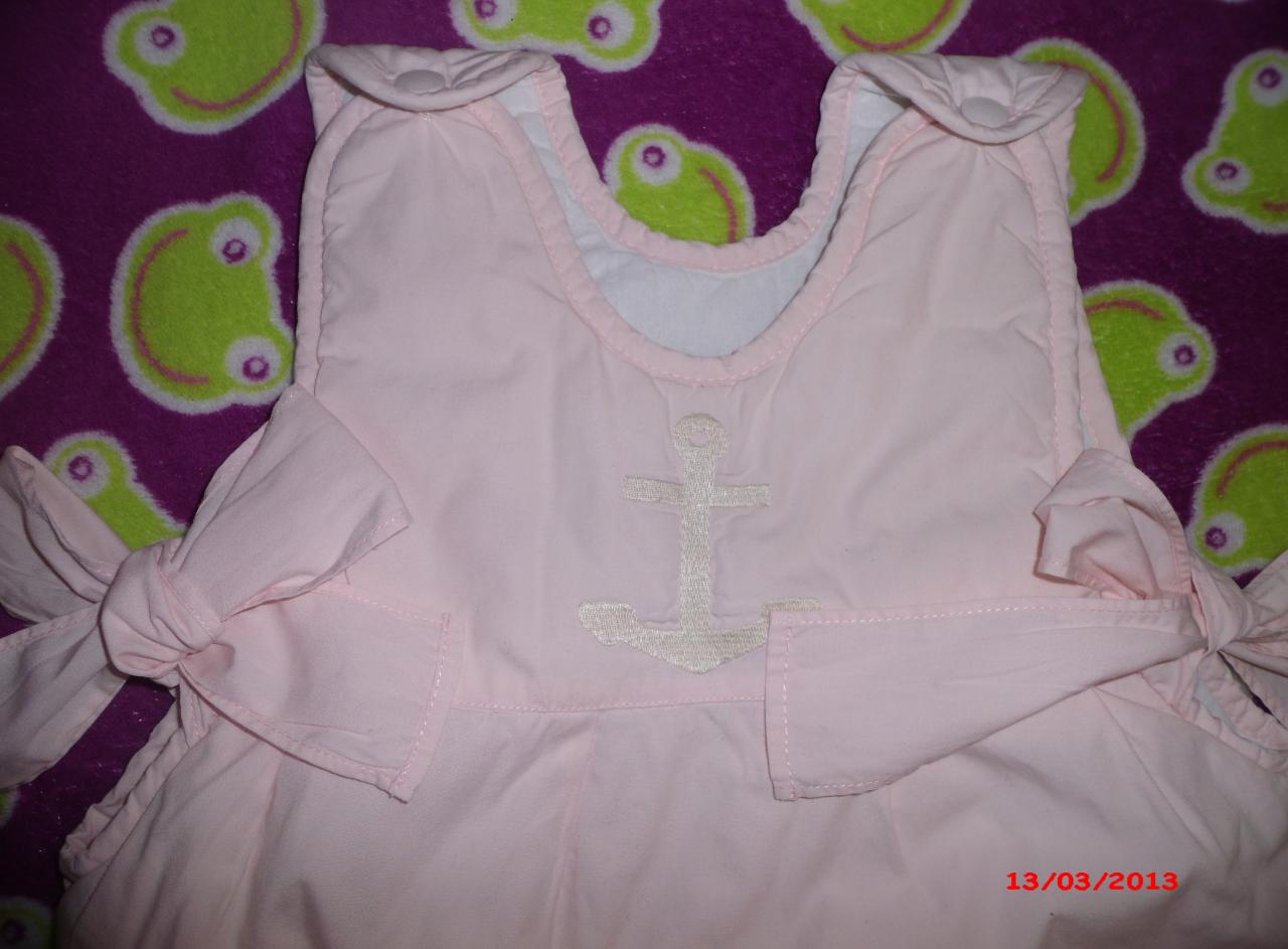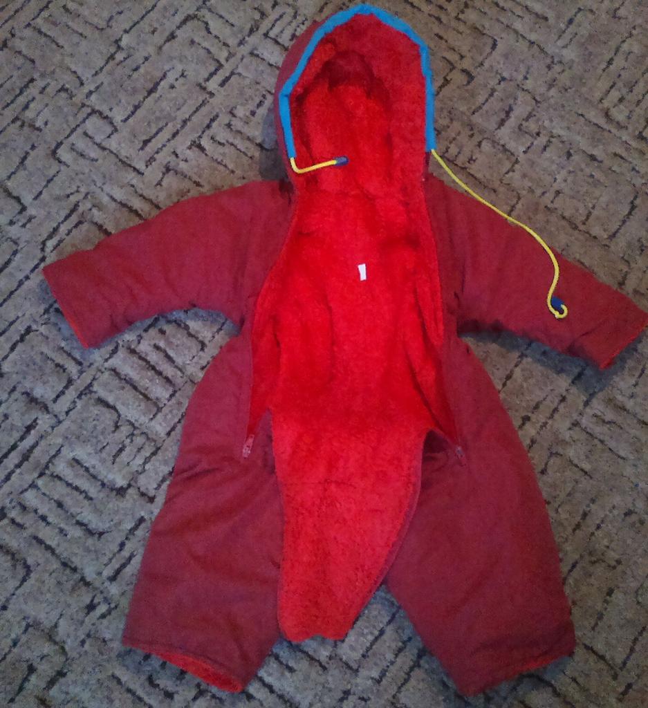 3)Комбез размер от ножек до плеч 60 см. Сзади на резинке есть дырочка и между ножек немного разошлись нитки. Меняется на 2 обычных киндера.
