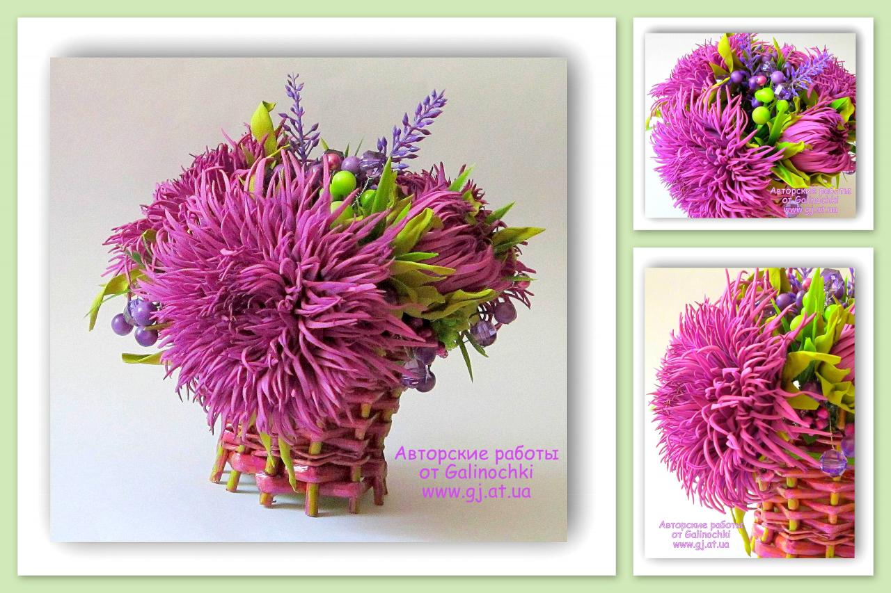 Хвастаюсь! Заказ.Моя авторская работа. Букет хризантем, выполненных вручную из пластичной замши, теперь украшает дом и дарит позитивное настроение милой постоянной клиенточке. Эта композиция, по её словам, живёт у неё на рабочем столе и каждый день поднимает настроение ей и её окружению, позволяет отвлечь внимание от рутинной работы. Прекрасный эксклюзивный подарок (без повторов) для себя или своих близких! Дарите подарки! Ведь это так приятно! Возможно выполнение в любой цветовой гамме. Пишите, звоните,заказывайте! И я украшу вашу жизнь цветами! P.S. на данную авторскую работу 300грн Ваша Galinochka