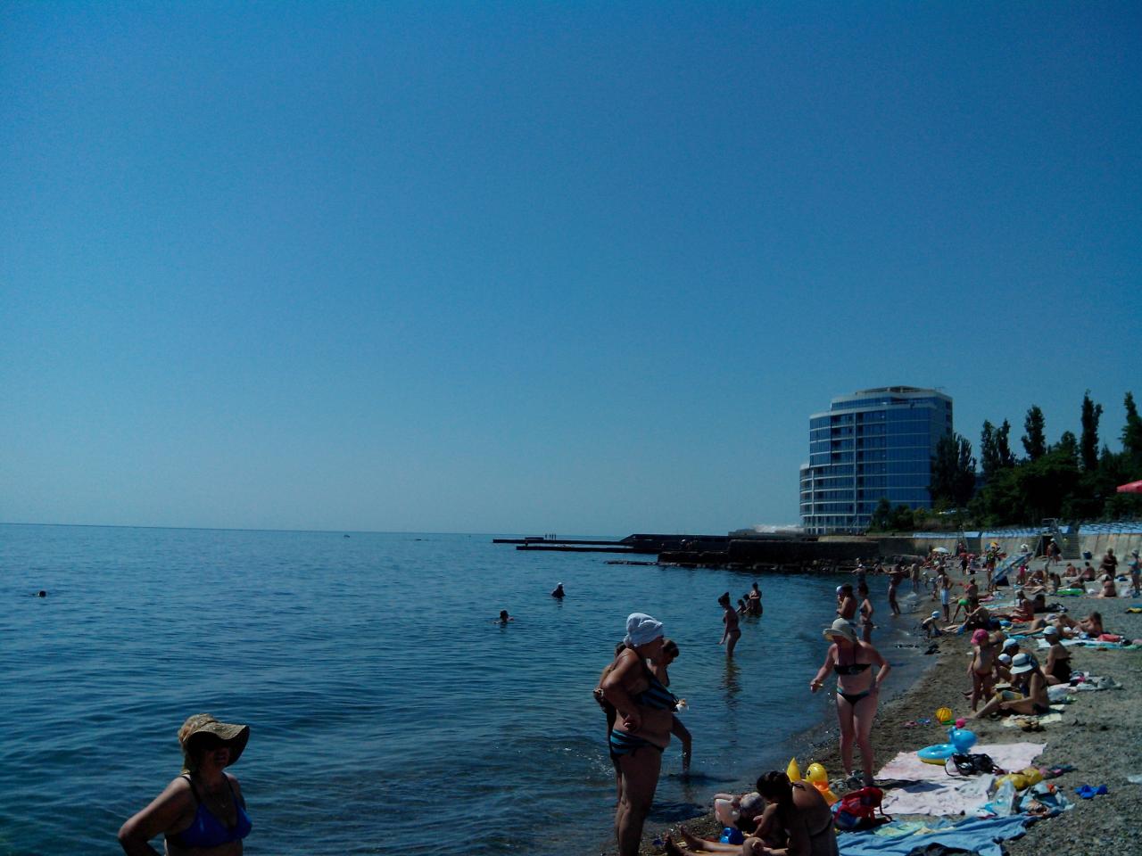 Народу побольше, чем вчера. Появились приезжие-свиньи, которые почему-то считают наше море мусорной ямой . Уж не знаю, сколько они из своего Мухосранска денег в наш город привозят, но находиться на пляже с такими ужасно противно.