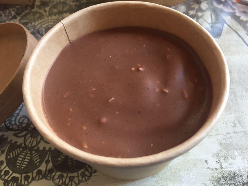 Но королем номера был десерт "Сникерс". Это бимба! Порция небольшая, но питательная. Один из самых вкусных десертов, которые попадались в доставке.