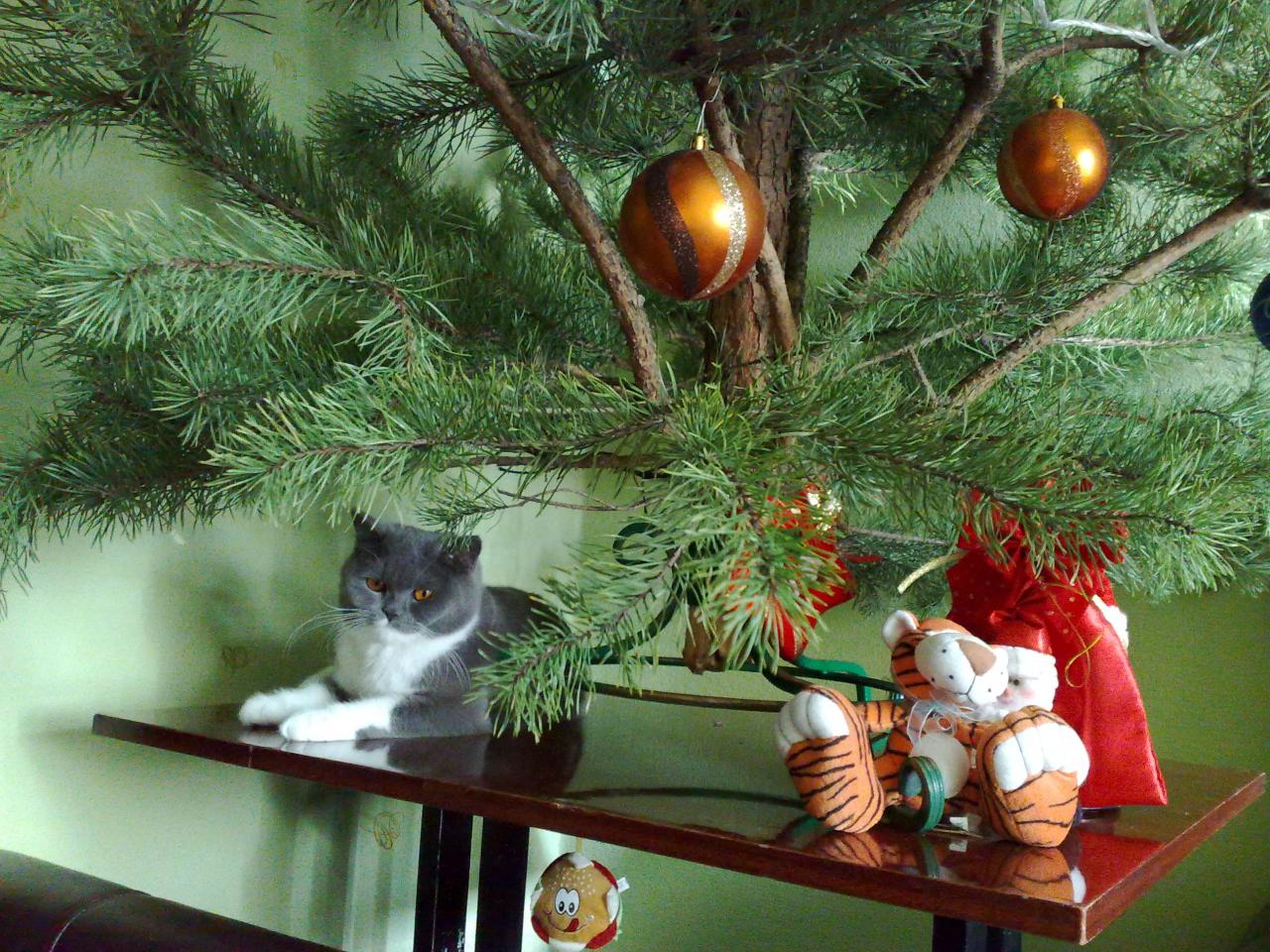 Не знаю, как другие котейки, но моя днем пай-девочка, а ночью - все норовит на елку залезть)