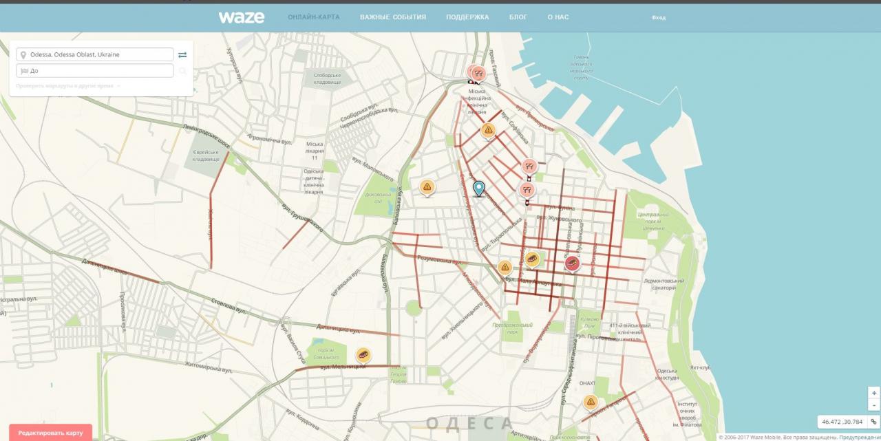 WAZE, но по статистике, пока что в вэйзе всего "одновременно онлайн" около 150 пользователей по Одессе, а в Киеве, например, уже больше 2-х тысяч