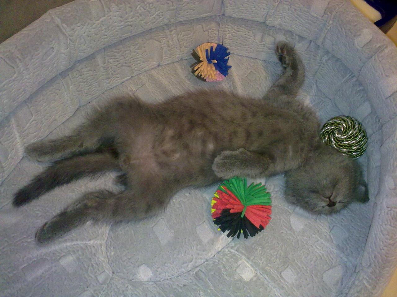 Кошка моя еще запрыгивает повыше, а у малыша попа не позволяет))))