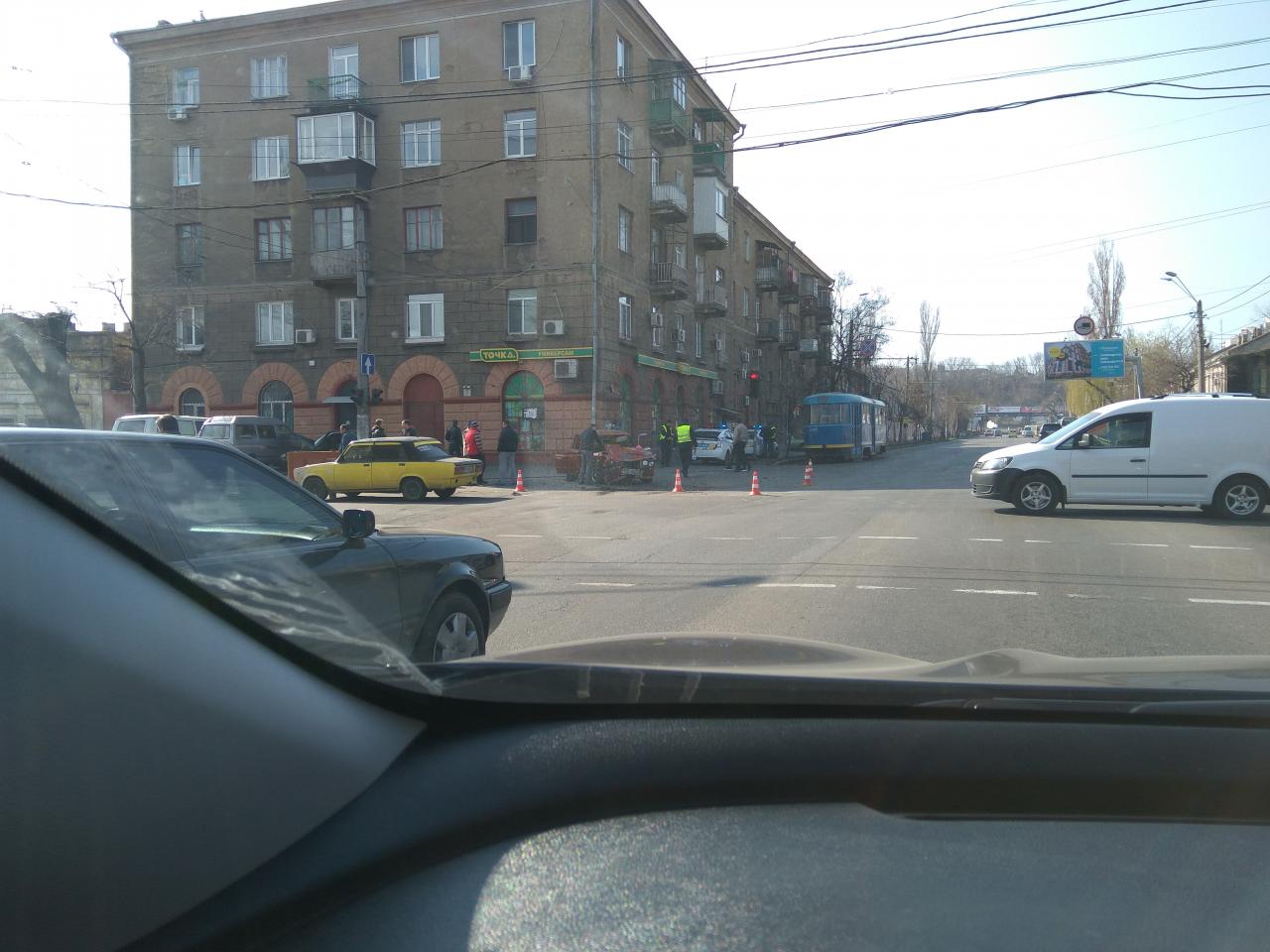В Одессе на ул. Паустовского произошло ДТП: трамвай протаранил легковушку, пытавшуюся пересечь трамвайные пути.