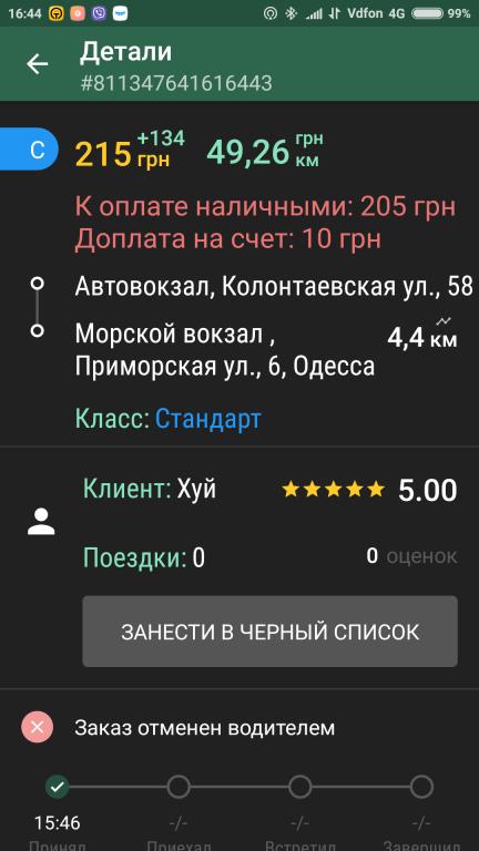 Был заказвы эфире: Аэропорт-Коблево. 700грн. 65км. По Уклону.