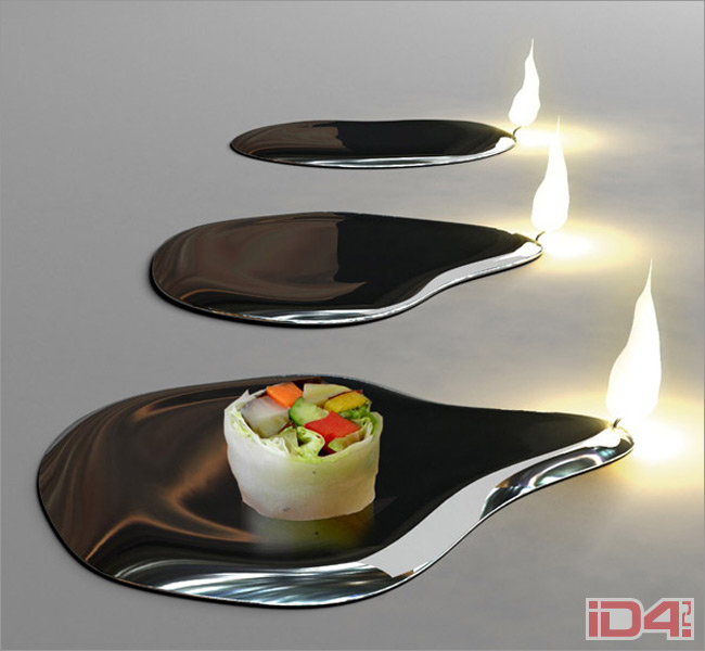 творение итальянца Соно Моччи (Sono Mocci) под названием «Жидкое серебро». Трудно сказать, насколько функциональна эта работа. Её смысл — как бы серебряная свеча, растаявшая от тепла и превратившаяся в небольшую подставку-поднос. Свет, надо полагать, настоящий. Думаю, внутри подноса находится ёмкость для масла или гель, который используют в современных имитациях каминов