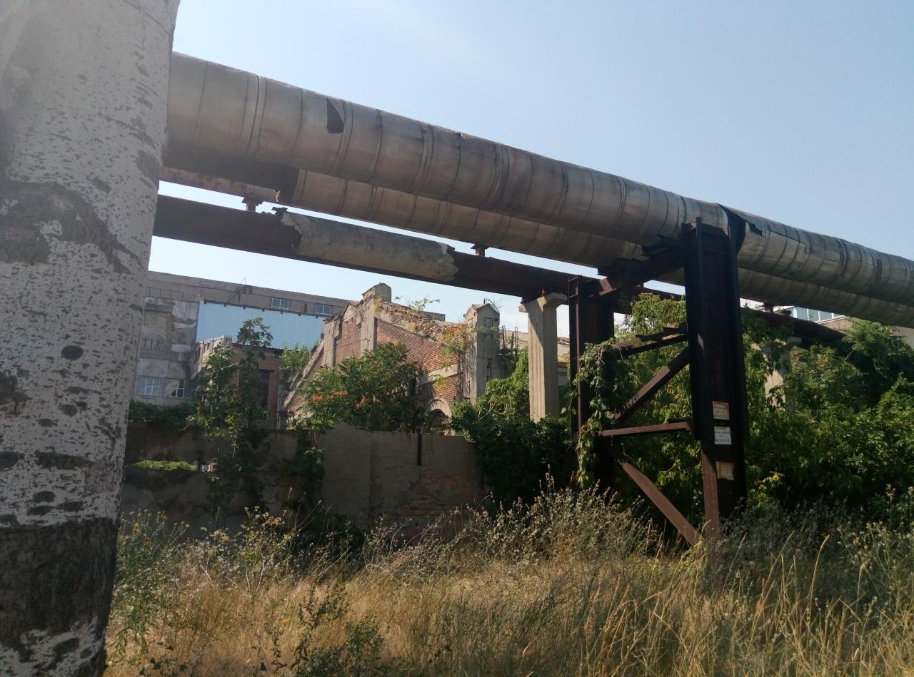 ..это трамвайная электростанция.За нашей спиной нефтегавань.Дорога ведущая к ней.Я там побродил этим летом-кое-что из зданий сохранилось.Ещё вид с моря.Вдали видна труба с "юбкой".