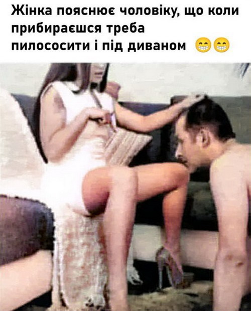 — Дорогой, наши новые соседи такая замечательная пара: он всегда её целует, обнимает, за попу держит. Почему вот ты так не делаешь?