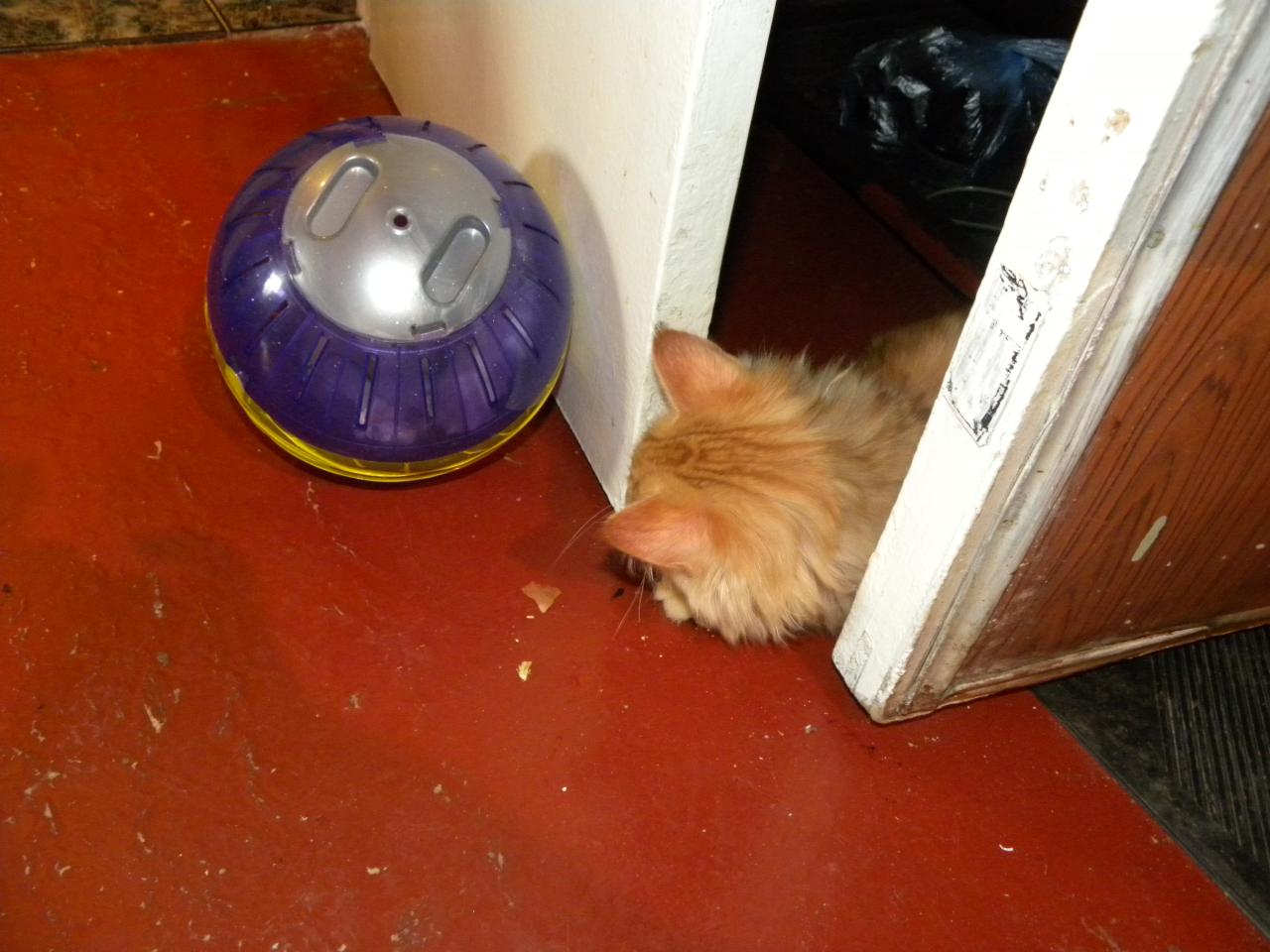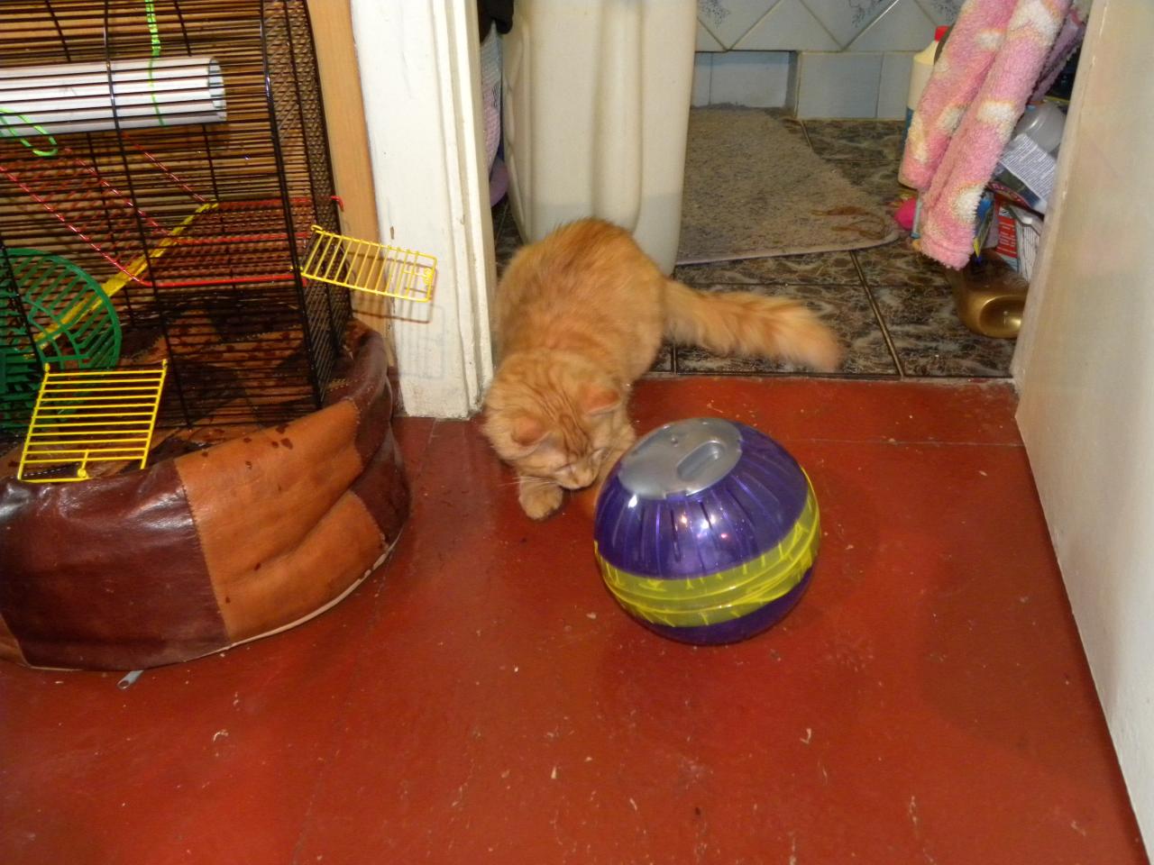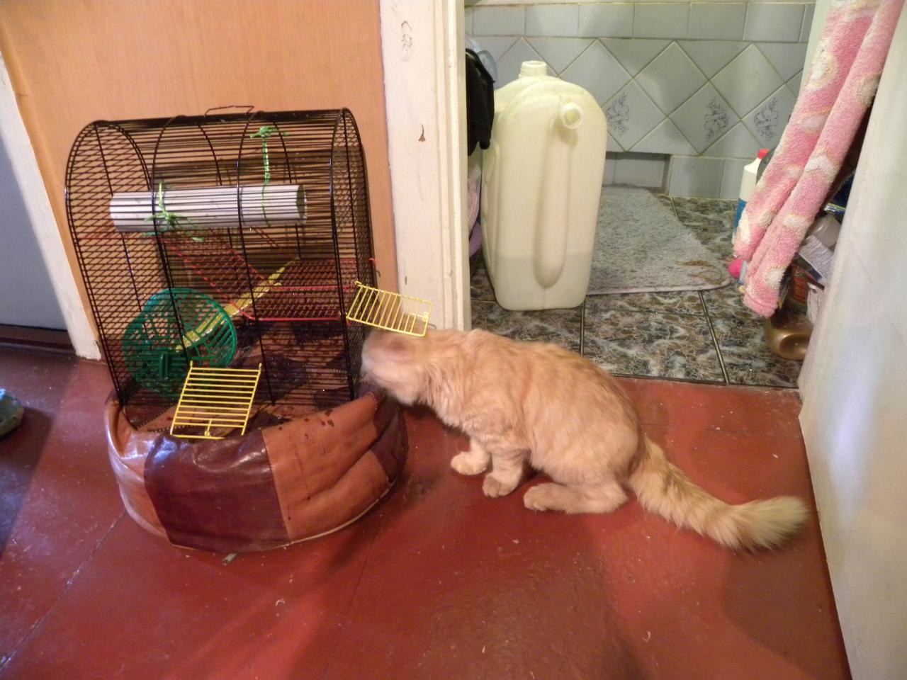Яша понимает, что воды в лейке меньше. чтобы язычком пить и поэтому сует лапу и облизывает.
