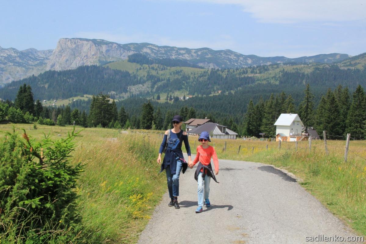 сусаненское виделось мне в Алеше со спины,но я шла, питаясь по дороге земляникой и подкармливая ребенка сахаром в стиках, оставшихся в кармане после какого-то кафе. Короче, заблудились мы капитально.Но, через полчаса примерно лес стал редеть, и мы оказались в поле, вокруг летали бабочки, пели птицы,вдалеке виднелись симпатичные домики. Загадочный тенистый Дурмитор остался позади, полуденный зной навалился на нас со всей силой, в общем, брели мы среди дивных альпийских лугов еще часа два.На пороге
