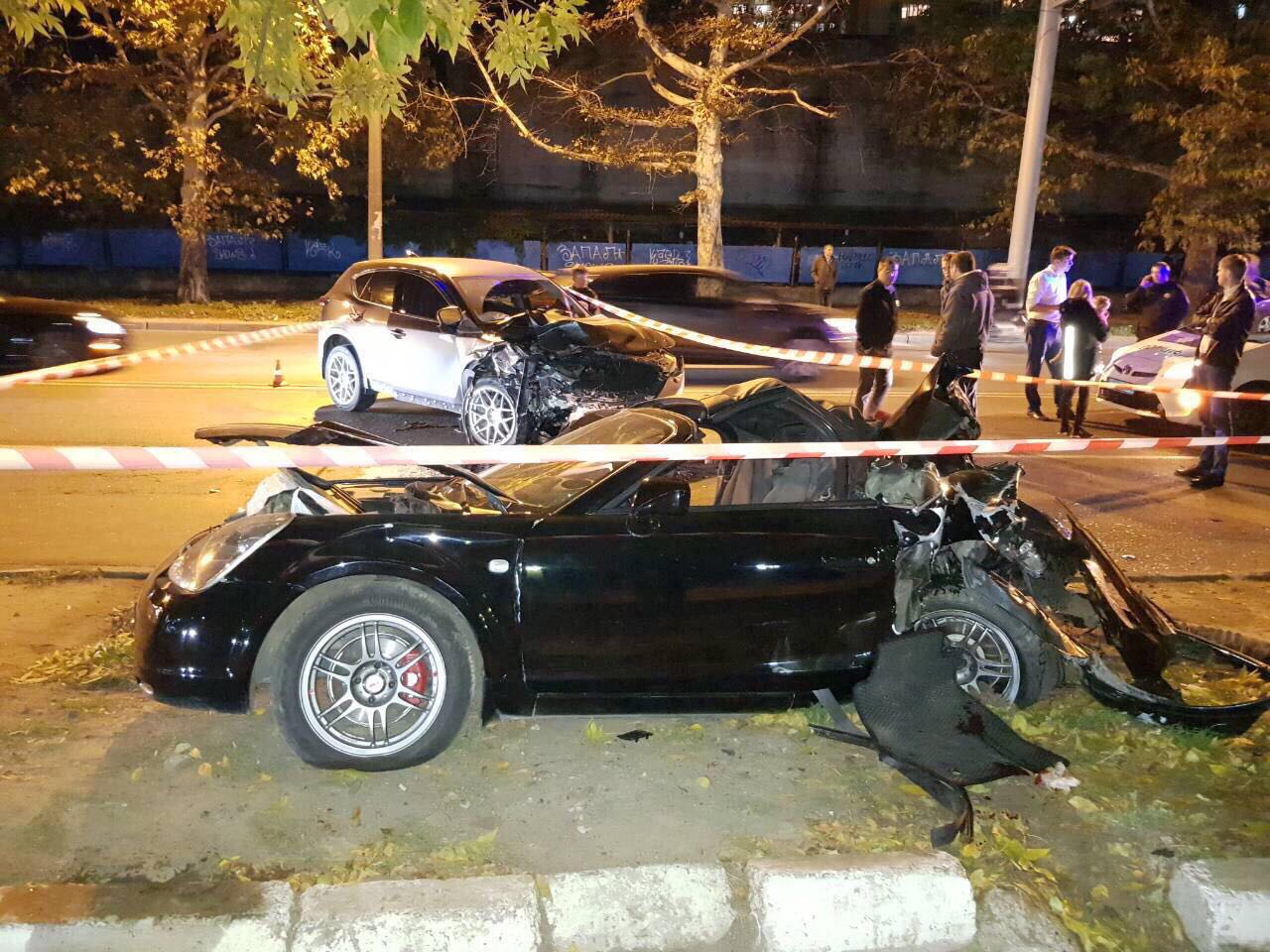 Toyota MR2, двигаясь в направлении центра, вошла задней частью кузова в Mazda MX-5.