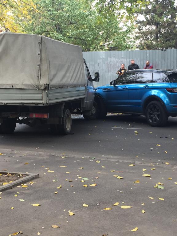 Авария на Посмитного в районе 18 номера(между Педагогической и 7 ст. Б.Ф.). Газель, Evoque и Dacia. Перекрыта вся проезжая часть. Объезд по тротуарам с высокими бордюрами.