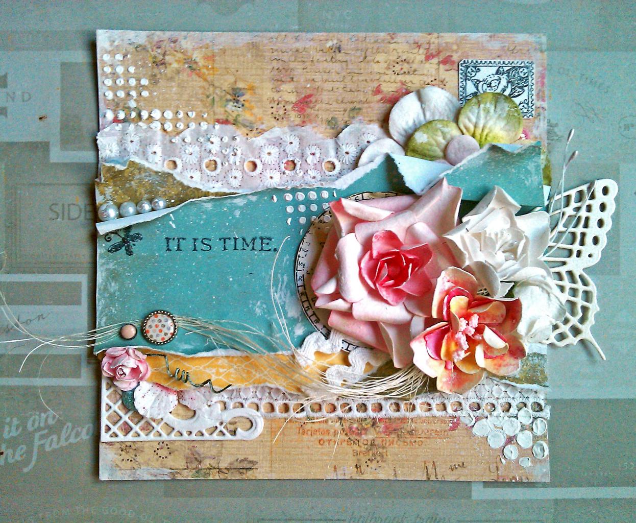 Аня, -красотища!!!!!!!!!!!!!! На открытке цветы выглядят шикарно,даже не скажешь,что самодельные (если бы не знала,что ты их сама клеила, подумала бы на покупные).А это кружево-шитье - великолепно вписалось, я вот его все время не знаю куда впихнуть,не вижу как-то наверное.