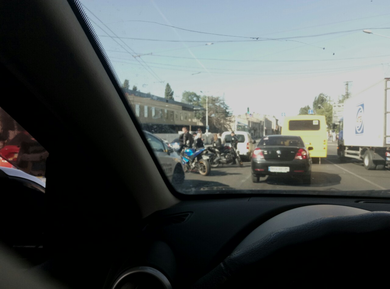 В субботу прим. в 16.00 наблюдал ДТП у Пересыпского моста по направлению на Поскот с участием мототайки,вьехавшего сзади в бус.