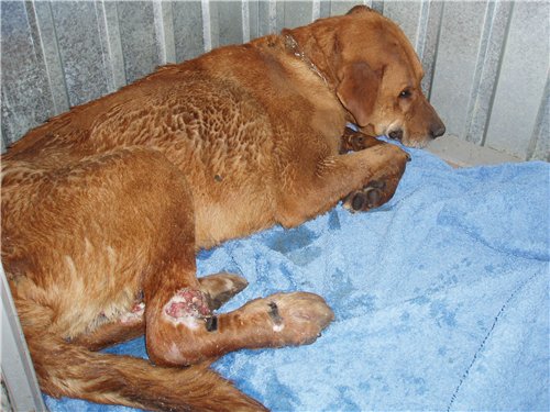 Возможно он останется калекой,но ни у кого не поднялась рука усыпить его. Молодой, добрый пёс, а самое главное в ошейнике ведь...