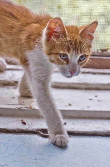 Рыжий котофей. 3-месяца. Игривый и активный. Периодически нападает на Цезаря) К лотку приучен. Ну очень чистоплотный постоянно умывался))