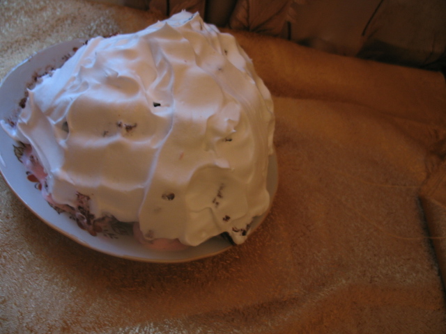Нежный бисквит, пропитанный ванильным сиропом. Крем — суфле птичье молоко с кусочками белого и черного шоколада.(можно без шоколада)